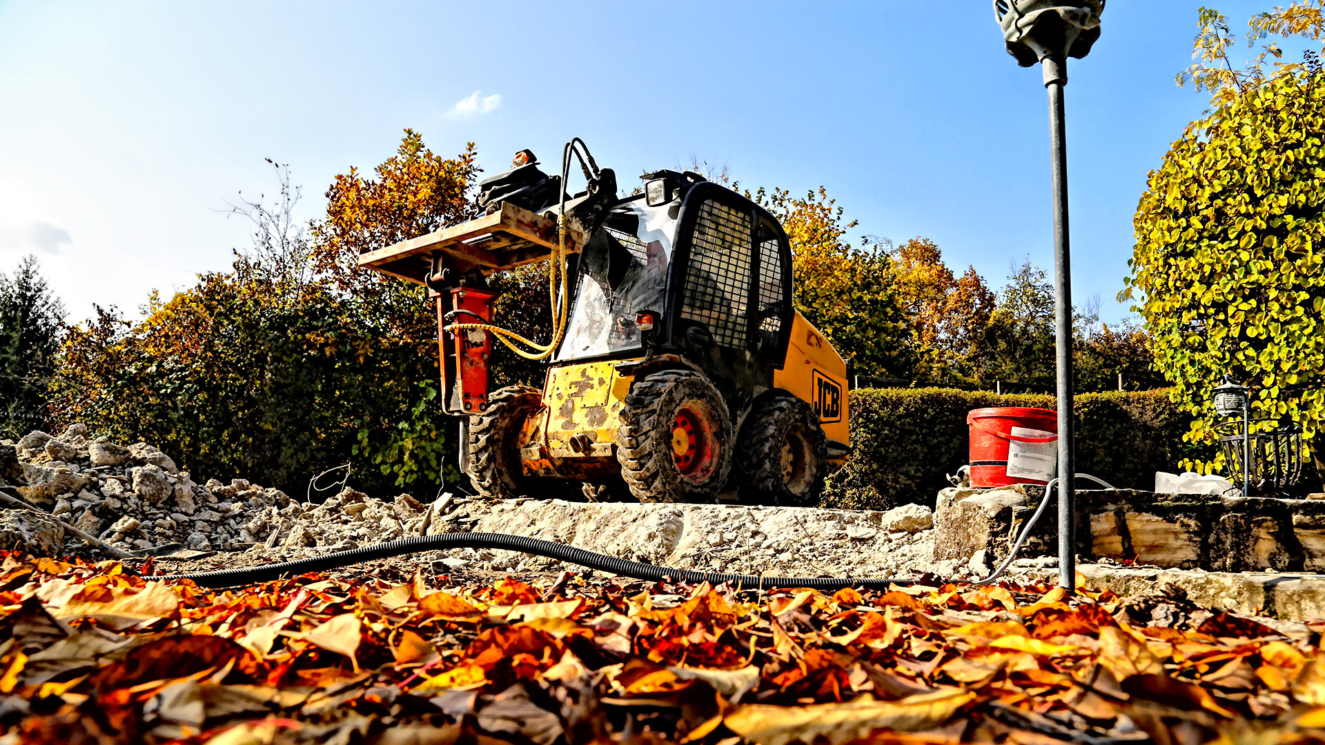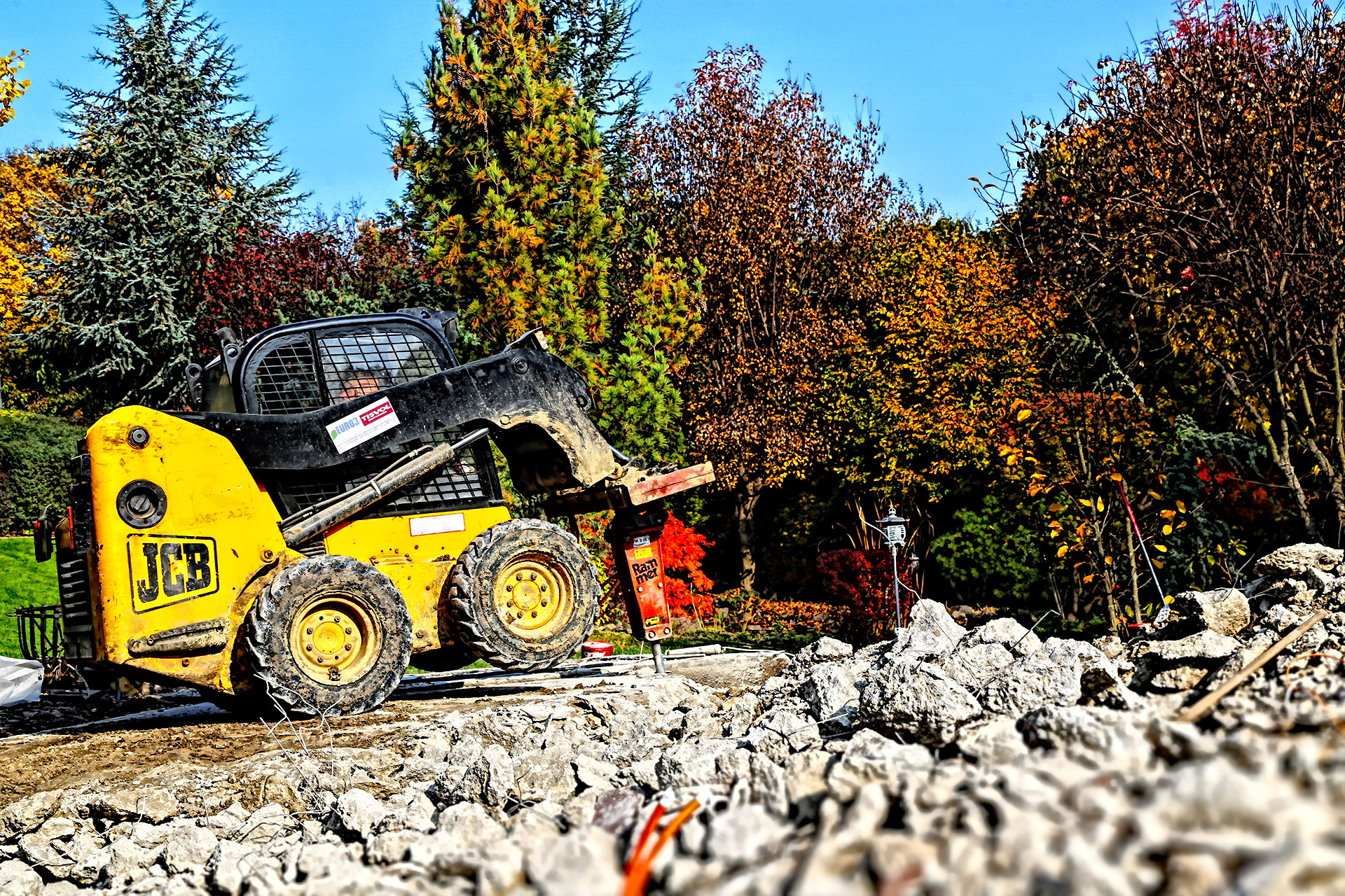 Különböző markoló-, toló- és rakodóadaptereinkkel akár teljesen síma földfelületet tudunk elkészíteni gyepes udvarok, autóbeállók számára: „szinte rakni is lehet a térkövet”